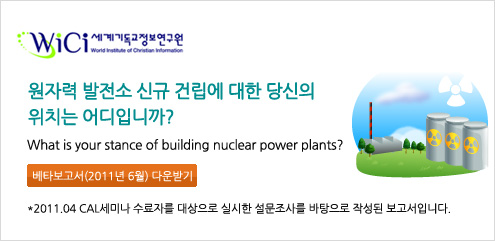 이제 환경문제는 단순한 기업이윤과 관련된 문제가 아니라, 바로 하나님의 창조물을 보존하기 위한 영적 책임의 문제로 생각해야 합니다. 이번 호에 첨부해 드리는 “위치” 보고서는 바로 이러한 맥락에서 최근 일본 원전사고와 관련하여 인류가 우리가 어떻게 지구를 보존할 것인가에 대한 기독교적 성찰을 도와주고 있으니 참고하시길 바랍니다.