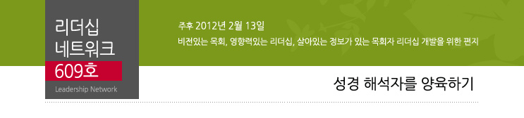 교회의 리더이며 또한 목회자라면 스승의 마음이 아니라 아버지의 마음으로 성도들을 양육하겠노라고 결단하는 것이 마땅합니다(고전 4:15). 그리고 아버지라면 아이에게 생선을 주기보다 고기 잡는 법을 가르쳐야 한다는 데에 이의를 제기할 수 없을 것입니다. 그러나 정작 자기가 섬기는 성도들에게 성경의 말씀을 일일이 해석하고 가르치기는 하여도 그들로 하여금 직접 말씀을 해석할 수 있는 능력을 갖도록 훈련하지는 않는 목회자가 많습니다. 그러다보니 교인들은 같은 본문을 가지고 다른 설교자가 다른 관점으로 설교하는 것을 들으면 그것을 통해 본문이 가진 풍부한 영적 양식을 깨닫기보다는 혼란을 느끼고, 목회자가 미리 일일이 가르쳐주지 않으면 주일학교 공과를 미리 준비하는 것마저도 힘들어합니다.